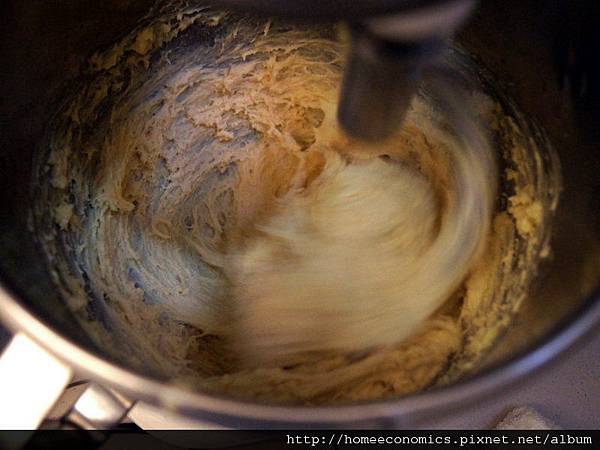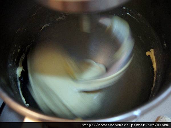 3) 等蛋黃和奶油全部加完,就可加快攪打速度。因為成份高,所以一開始看起來像麵糊似的。