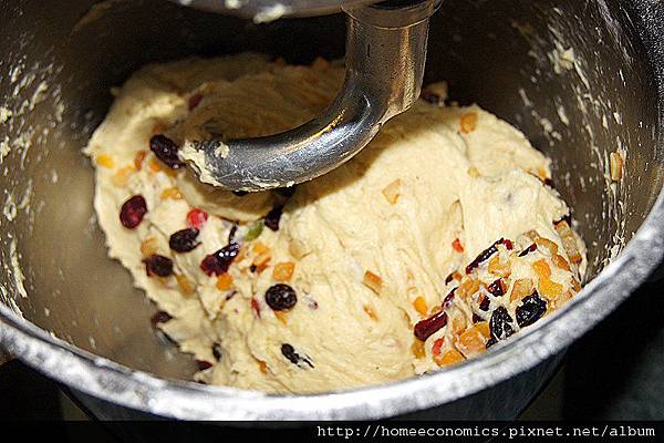 6) 加水果乾,慢速攪拌一下;不要過度攪拌,可能會破壞麵筋。