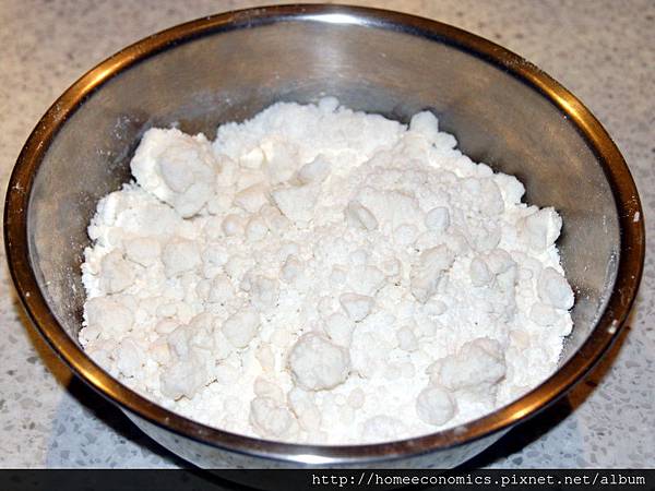 1) 把糖溶於水,加入米粉中攪拌,用手搓散,放置半小時。