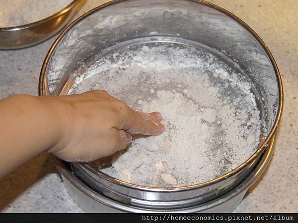 2) 過篩。這是最麻煩的步驟,不宜用粗孔篩子,但用細的篩子要磨搓好久;還好我有好看的「偷天任務」,一邊看電視一邊做活,不知不覺就篩好了。