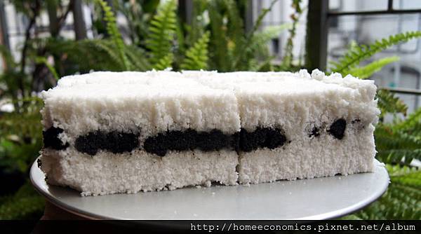 蒸好的糕可以壓實一點,組織細、切起來也整齊,但我沒壓,所以組織比較鬆,也很好吃。
